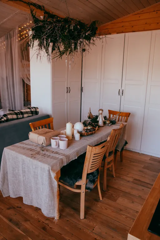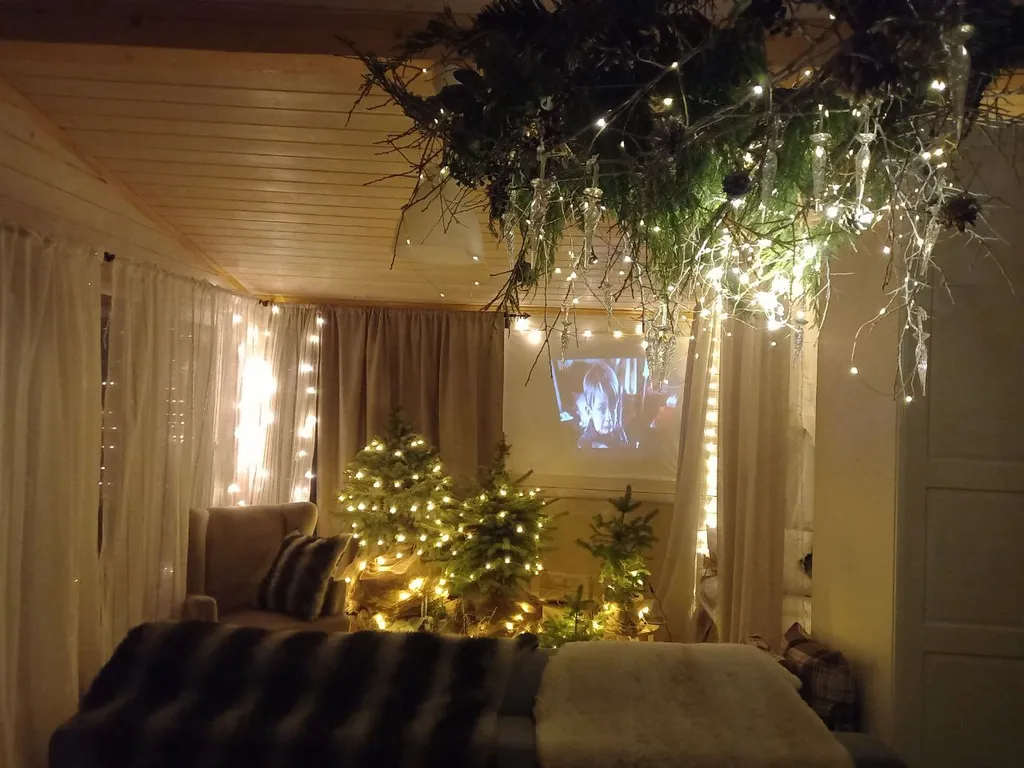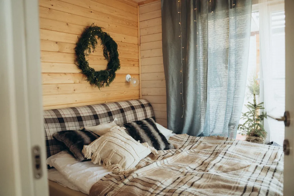 У нас в доме гостиная, спальня, зона для релакса ( 2 двуспальные кровати; 160*200, 180*200) + кровать для детей.